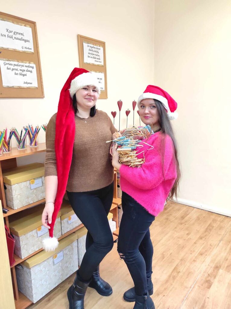 Nakvynės namų gyventojus linksmosios nykštukės nudžiugino sveikinimais ir dovanomis.