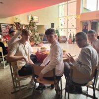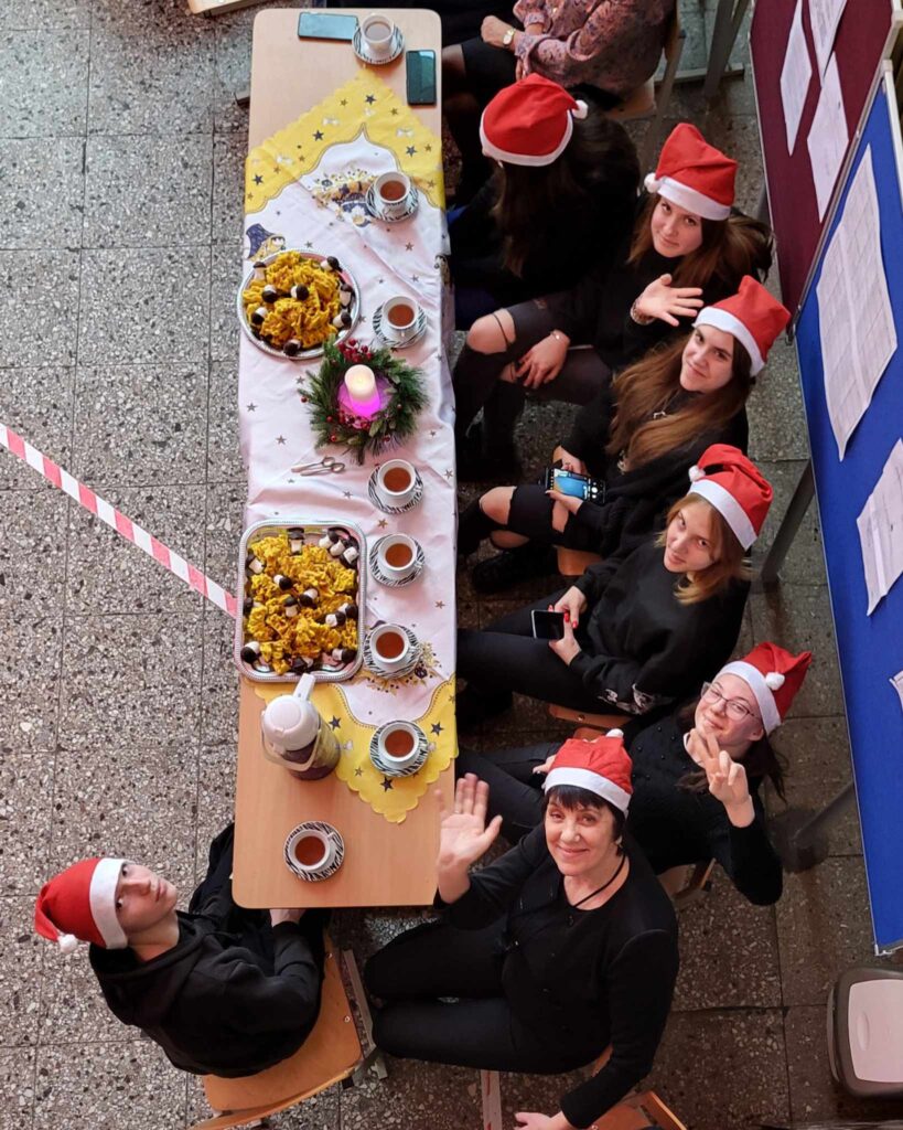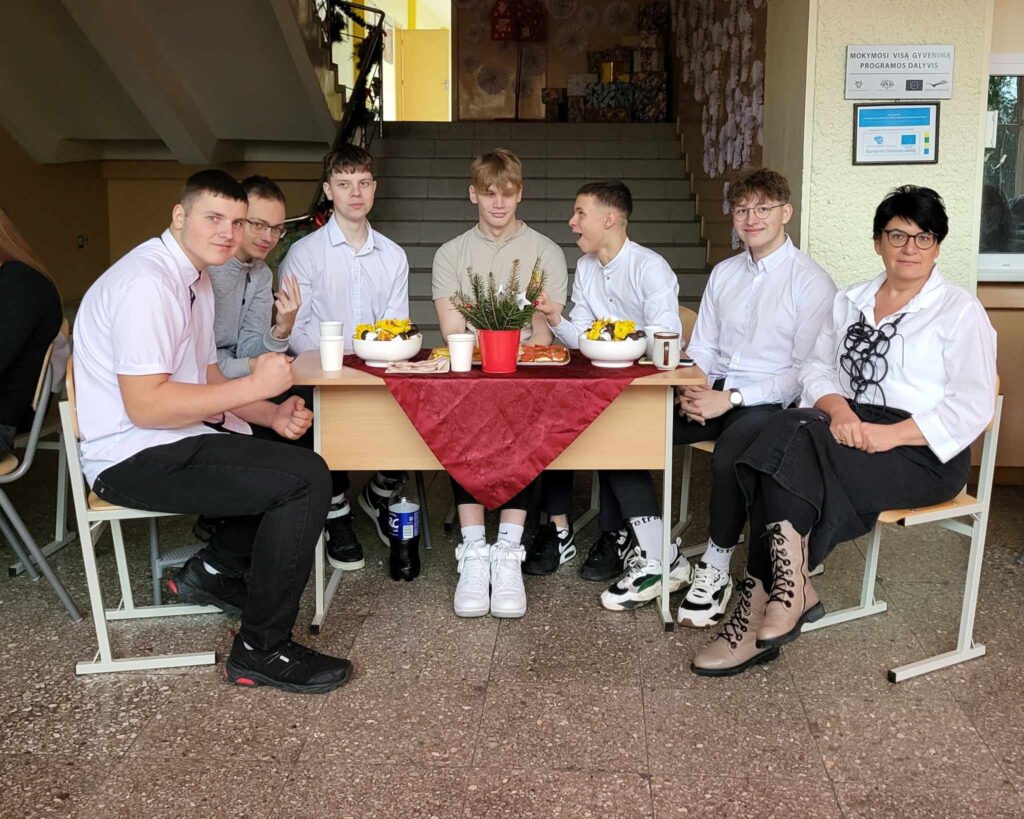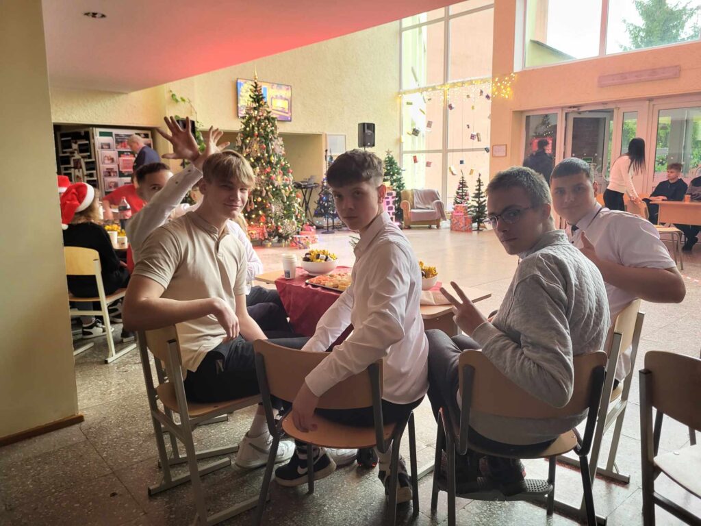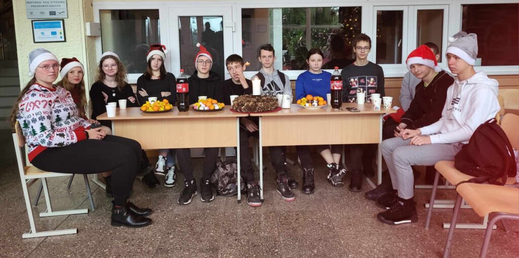 Šiais metais Kalėdinis renginys mūsų mokykloje vyko kitaip. Visos grupės susirinko prie papuoštų ir vaišėmis padengtų staliukų. Mokiniai vaišinosi mokyklos dovanotais saldumynais, žaidė įvairius žaidimus, šoko ir dainavo kartu su renginio vedėju Irmantu. Buvo daug juoko, linksmybių, staigmenų ir prizų. Žaidimuose dalyvavo ne tik mokiniai, bet ir mokytojai. Dvi valandos prabėgo kaip akimirka, dar ilgai mokiniai nenorėjo skirstytis ir diskutavo apie naujoviškai surengtą šventę, kuri visiems patiko.