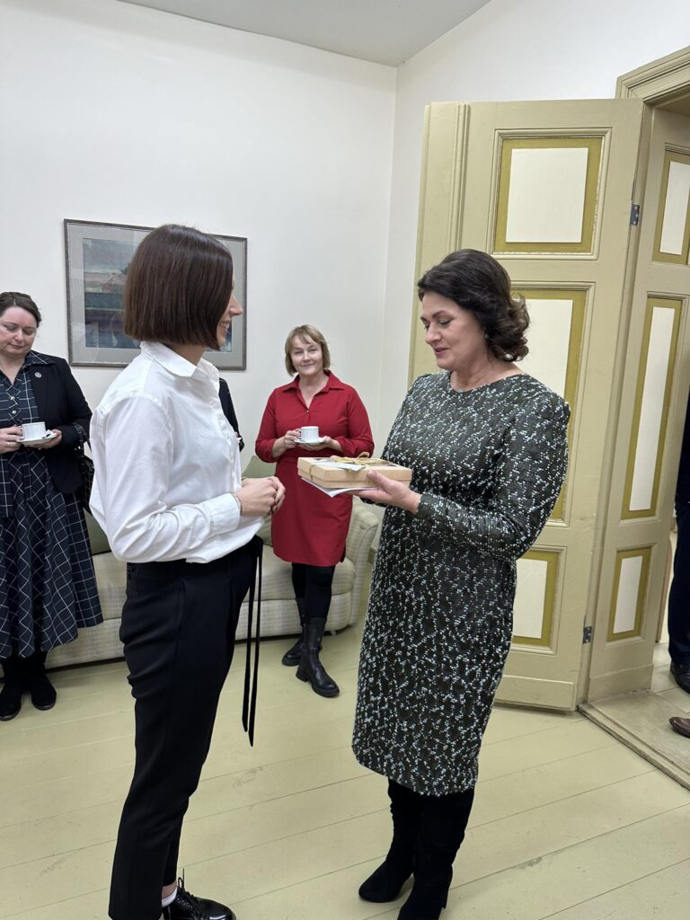 Diana Nausėdienė, atstovaudama šalies prezidento šeimai, lankėsi VšĮ Kintai Arts. Vizito metu pirmajai poniai ir kitiems svečiams iš prezidentūros mūsų centro veiklą trumpai pristatė direktorė Vilma Grigonienė, o Klaipėdos krašto kalėdinius saldumynus ir kafiją paruošė būsimieji virėjai kartu su savo profesijos mokytoja Daiva Jotkuviene. Vaišes aptarnavo padavėjo ir barmeno specialybės mokiniai Abigailė ir Vitalij. Džiugu, kad svečiai žavėjosi mūsų mokomojoje virtuvėje iškeptais kepiniais – ponia D. Nausėdienė norėjo išgirsti, kaip ir iš kokių produktų jie buvo gaminami, ir netgi paprašė receptų. Be to, Abigailės ir Vitalijaus aptarnavimas bei puiki laikysena pelnė mūsų centrui gausių Pirmosios ponios komplimentų, tad galime drąsiai sakyti, jog šis susitikimas visai mūsų bendruomenei buvo ypatingas. Mokiniai išties pasižymėjo profesionalumu ir paslaugumu, parodė aukštą aptarnavimo lygį ir puikius profesinius įgūdžius. Be to, Mažosios Lietuvos krašto kepiniai ne tik suteikė išskirtinumo šventei, bet ir padėjo akcentuoti kultūros paveldo svarbą.