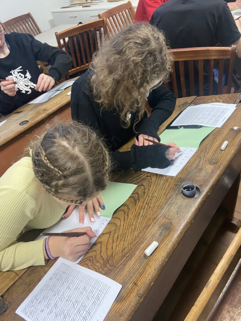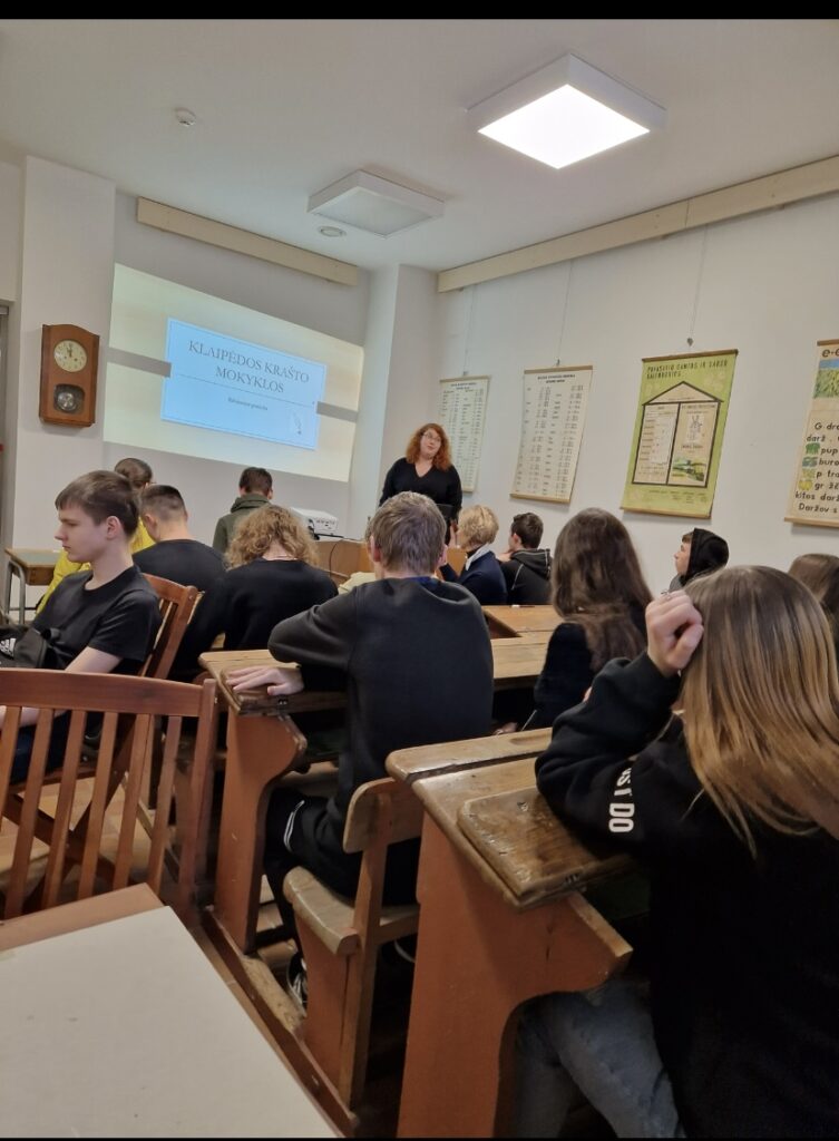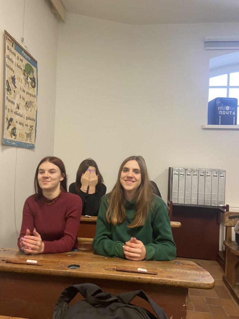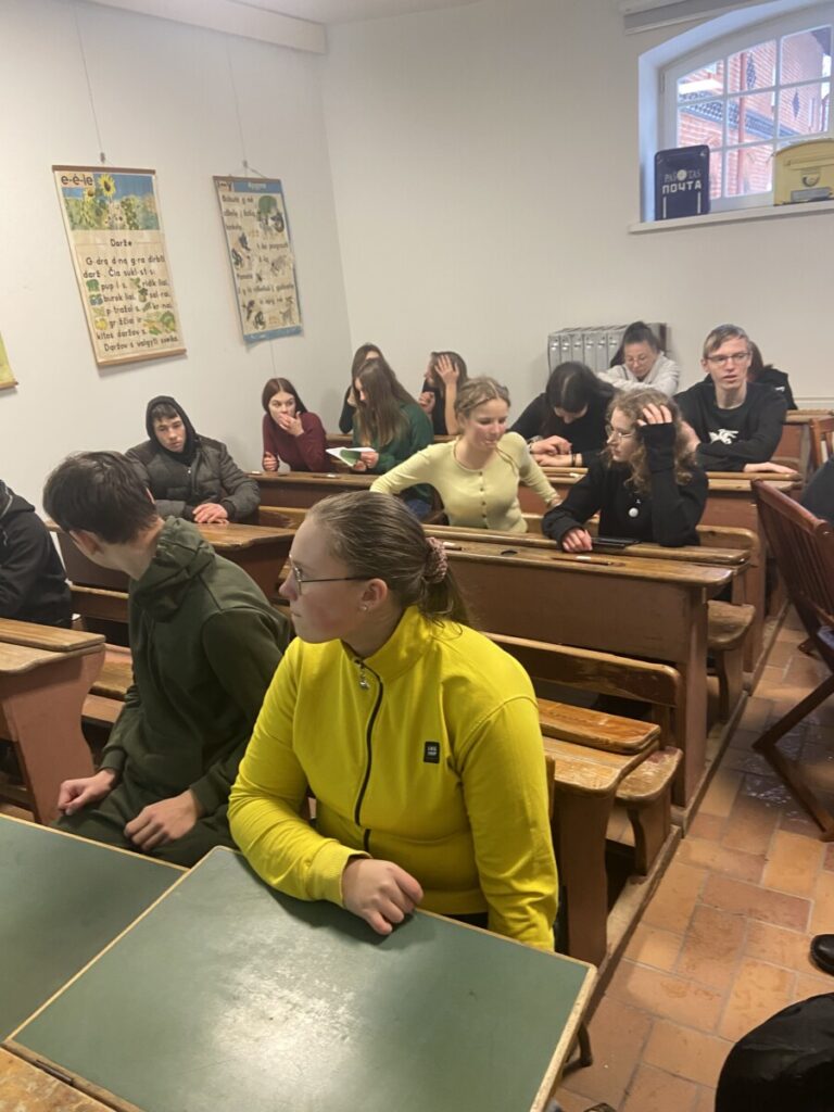 Istorijos mokytoja Gaiva ir dailės mokytoja Asta kartu su 9 – 10 klasių mokiniais dalyvavo H. Šojaus muziejaus edukacijoje ,,Klaipėdos krašto mokyklos“. Užsiėmimo metu mokiniai turėjo galimybę į ugdymo procesą pažvelgti XIX a. Klaipėdos krašte gyvenusio mokinuko akimis. Susipažino su Mažosios Lietuvos mokyklų raida, jos ypatumais, buvusiu mokykliniu inventoriumi ir mokymo priemonėmis. Kiekvienas dalyvis turėjo galimybę pasėdėti senoviškame mokykliniame suole, rašyti ant grifelinių lentelių bei pasimokyti dailyraščio. Mokiniai nebuvo sužavėti informacija, kad už netinkamą elgesį pamokoje, seniau reikėdavo klūpoti ant žirnių, o neatvykus į pamokas – mokėti baudą. Nustebino tai, kad 1588 m. Verdainėje jau veikė žiemos mokykla.