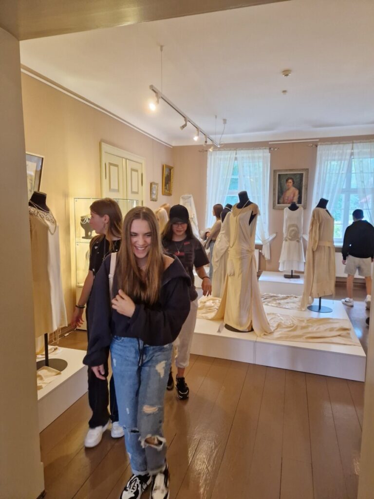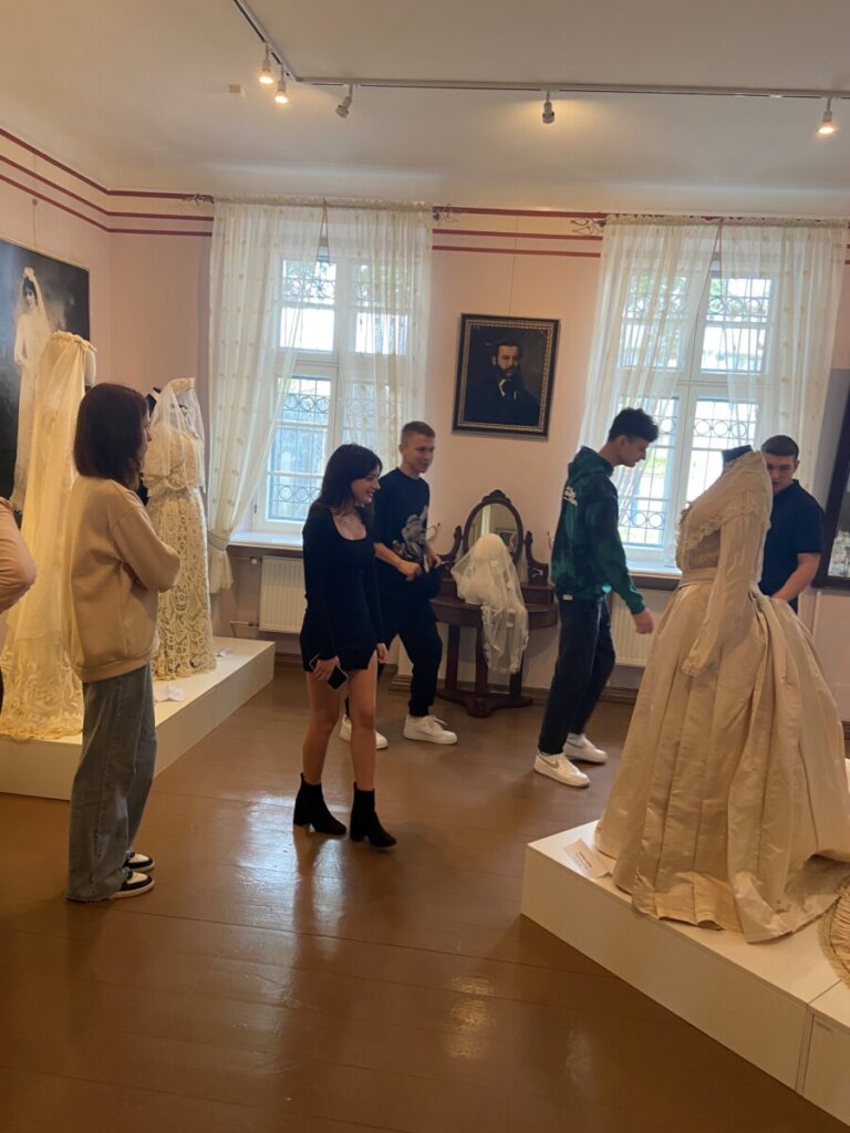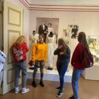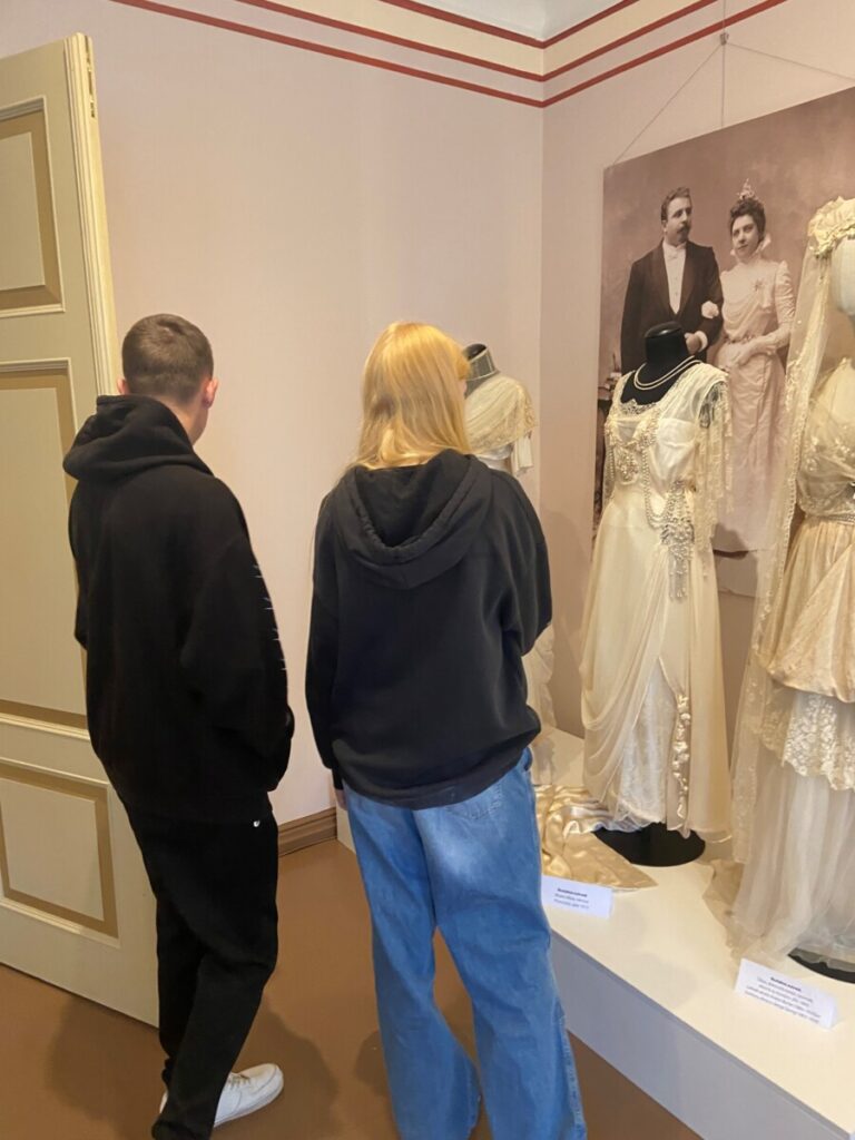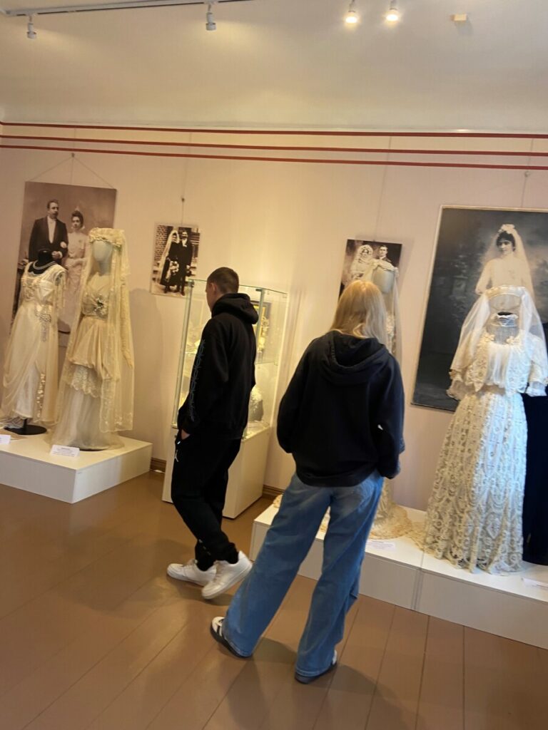 Šį kartą Šilutės Hugo Šojaus direktorės Indrės Skablauskaitės dėka mūsų mokyklos mokiniai galėjo aplankyti unikalią parodą ,,XIX-XX a. vestuvių mada”.