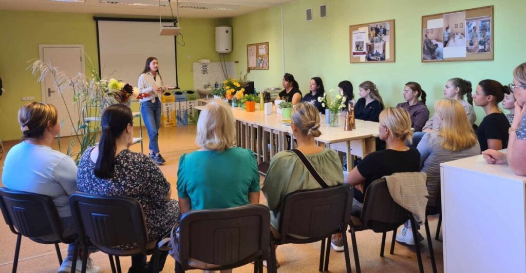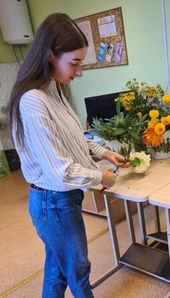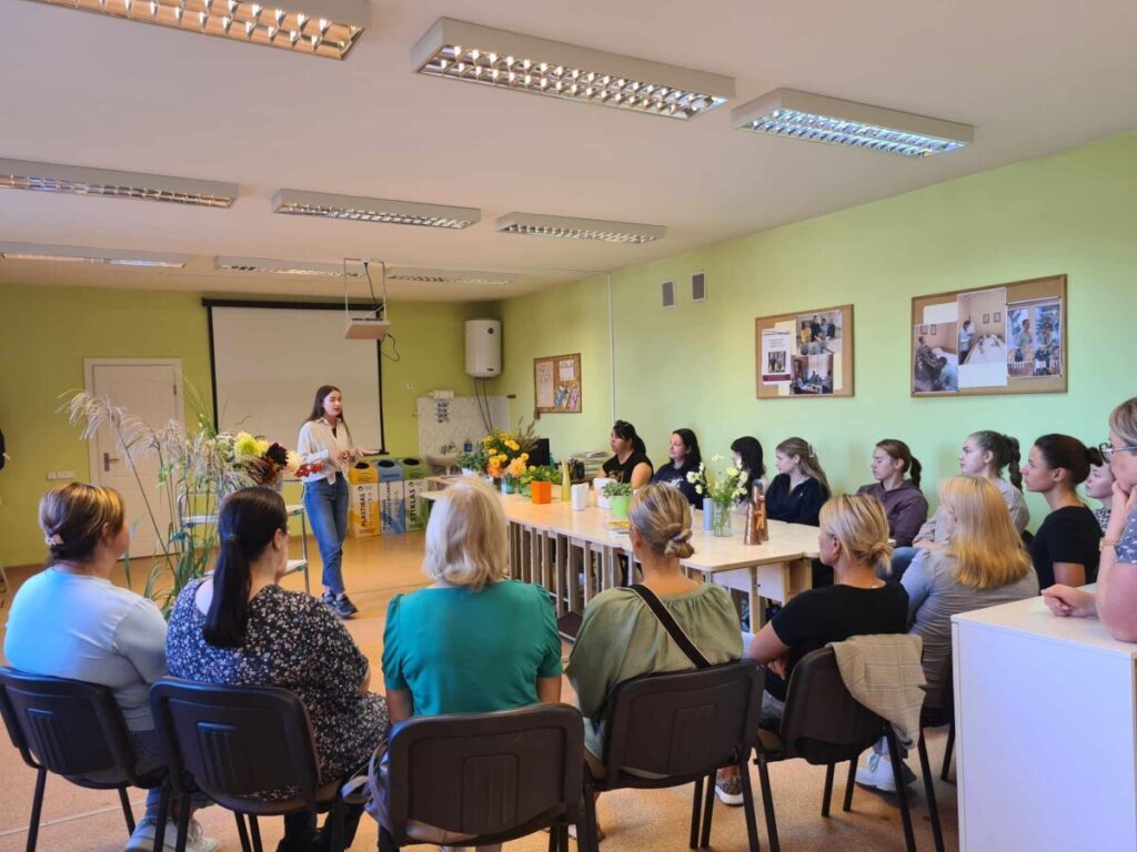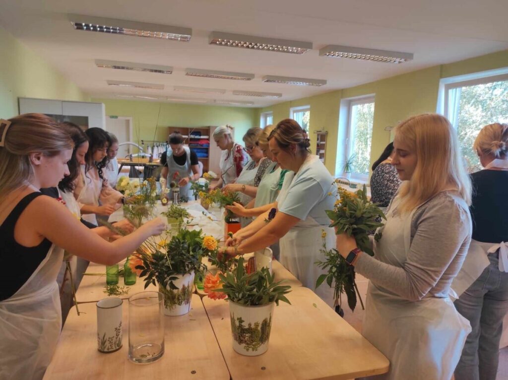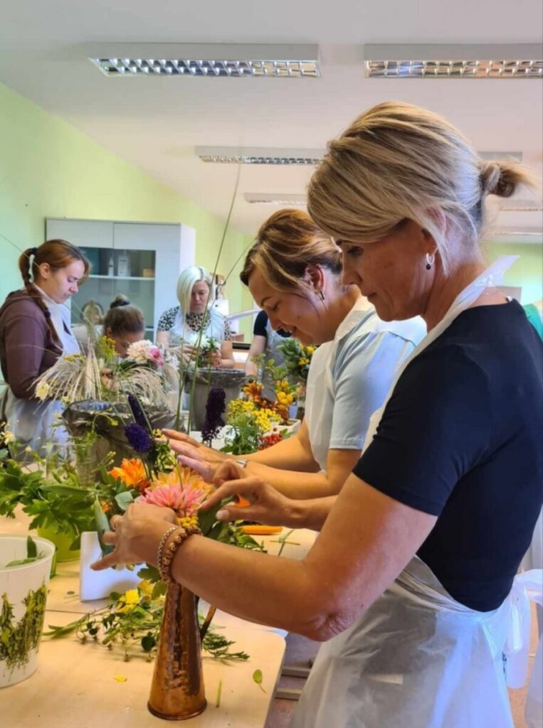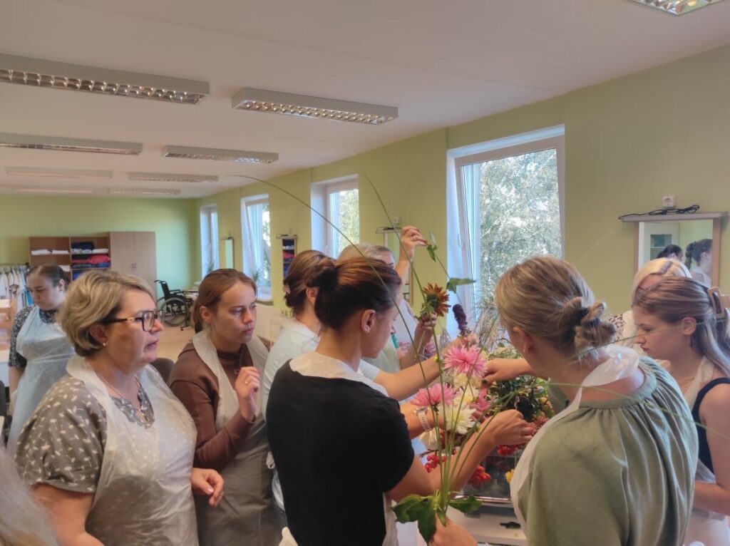 Individualios priežiūros darbuotojo specialybės mokinės dalyvavo edukacijoje „Skintų gėlių priežiūra ir komponavimas“.