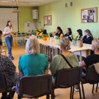 Floristė Esmira Jokubauskaitė papasakojo apie skintų gėlių priežiūrą,  pademonstravo, kaip tinkamai paruošti augalus merkimui. Anot jos,  kuo daugiau šiltų emocijų išreikšime  komponuodami puokštes, tuo ypatingesnę nuotaiką sukursime. Dažnai pakanka kelių gėlių žiedelių, šakelių, kad sukurtumėme mielą kompoziciją.