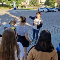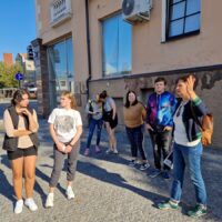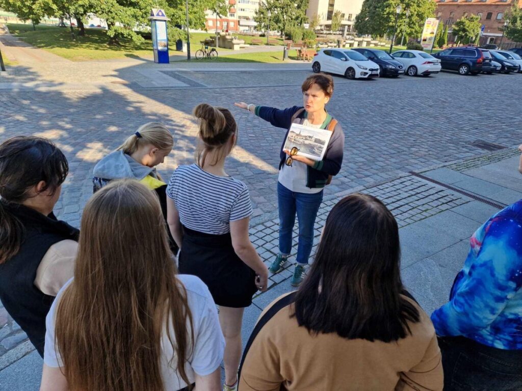 Mokiniai 2 val. vaikščiojo ir tyrinėjo vokiškosios kultūros objektus ir architektūros palikimą Klaipėdos mieste. Ekskursijos metu buvo atliekamos lavinamosios užduotys.