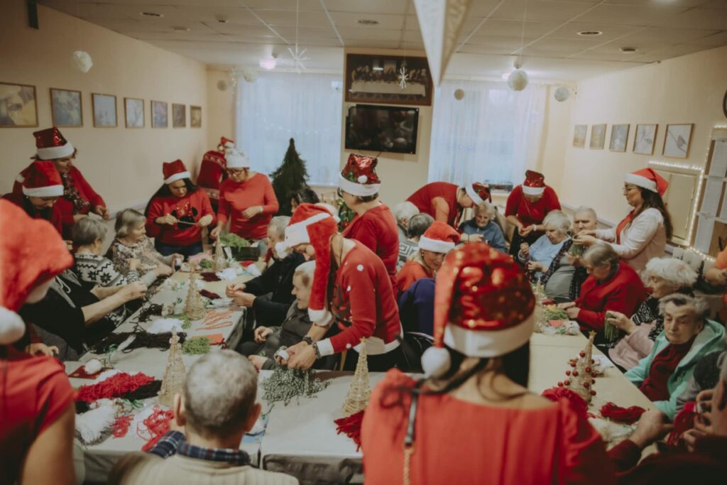 Artėjant gražiausioms žiemos šventėms individualios priežiūros darbuotojo specialybės mokinės kartu su mokytojomis Edita Endruliene ir Viktorija Šepetiene tęsia prasmingą tradiciją – lankosi Šilutės miesto socialines paslaugas teikiančiose įstaigose, nešdamos džiaugsmą, šilumą ir bendrystę.