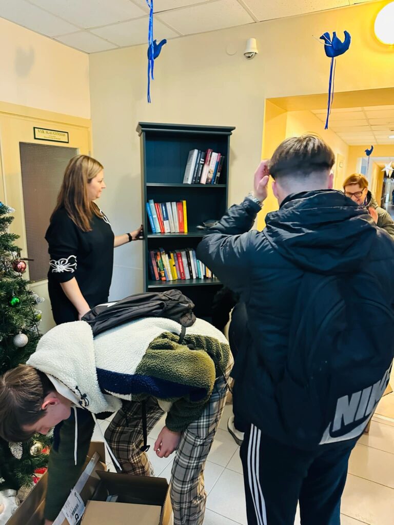 Graži bičiulystė ir partnerystė mūsų mokyklą sieja su Šilutės socialinės globos įstaigomis – net po keletą kartų per metus jų globotinius ir gyventojus aplanko ir pradžiugina mūsų būsimosios individualios priežiūros darbuotojos su savo mokytojomis Edita ir Viktorija. O štai artėjant Kalėdoms mokykla kartu su Šilutės baldų by SBA Home koncernu suvienijo jėgas ir Šilutės socialinės globos namų seneliams padovanojo naujutėlaitę lentyną, pilną pačių įvairiausių knygų. Direktorės Vilmos  Grigonienės žodžiais, o argi ką nors kitą galėjo dovanoti baldus gaminanti įmonė, jei ne knygų lentyną, o mokykla, skleidžianti žinių šviesą – knygas?
