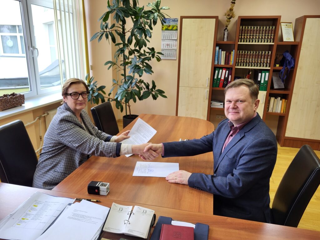 Vasario 12 dieną mūsų mokykloje lankėsi Klaipėdos valstybinės kolegijos direktorius dr. Remigijus Kinderis kartu su verslo fakulteto dekane bei pavaduotoja strateginei plėtrai. Vizito metu aptartos abiejų institucijų vykdomos mokymo ir studijų programos, jų plėtros perspektyvos regione ir visoje šalyje. Taip pat pasirašyta bendradarbiavimo sutartis bei aptartos galimybės organizuoti vizitus į mokymo bazes, laboratorijas, keistis gerąja patirtimi bei idėjomis.
