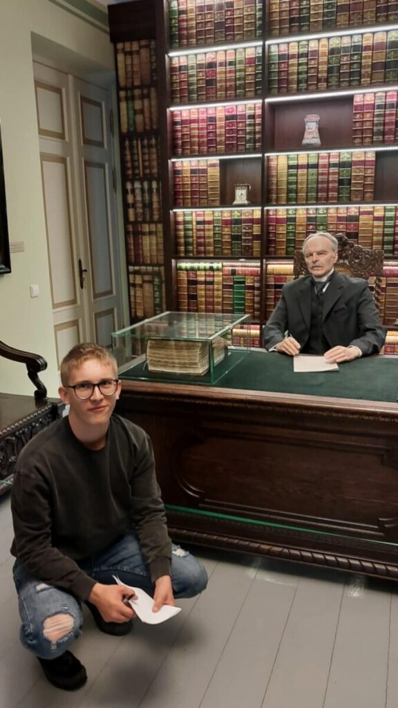 Rugsėjo 17 d. Turizmo ir paslaugų skyriaus vyresniųjų klasių mokiniai kartu su lietuvių kalbos ir anglų kalbos mokytojomis Aurelija ir Asta Hugo Šojaus muziejuje dalyvavo integruotoje kalbų pamokoje.