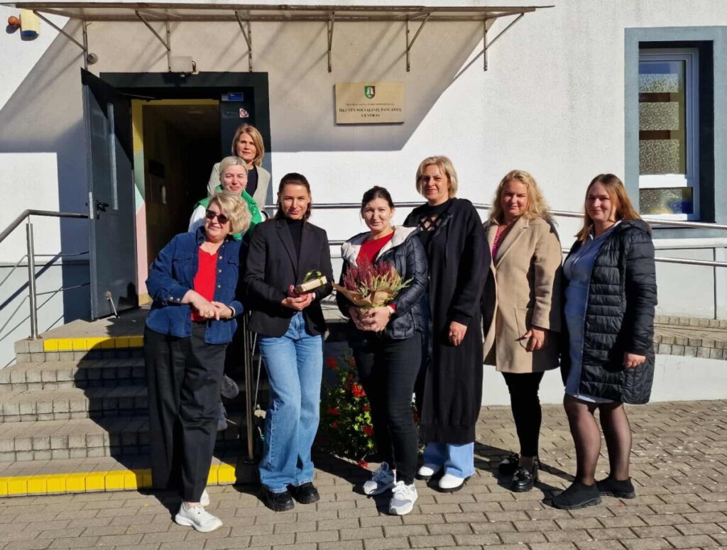 Mokinės aplankė Šilutės socialinės globos namus, Pamario senjorų namus, Vaikų dienos centrą bei Socialinių paslaugų centrą. Su šypsenomis ir šiltais apkabinimais jos sveikino socialinį darbą dirbančius specialistus, įteikė rudeniška šiluma dvelkiančius viržius ir saldžias dovanėles.