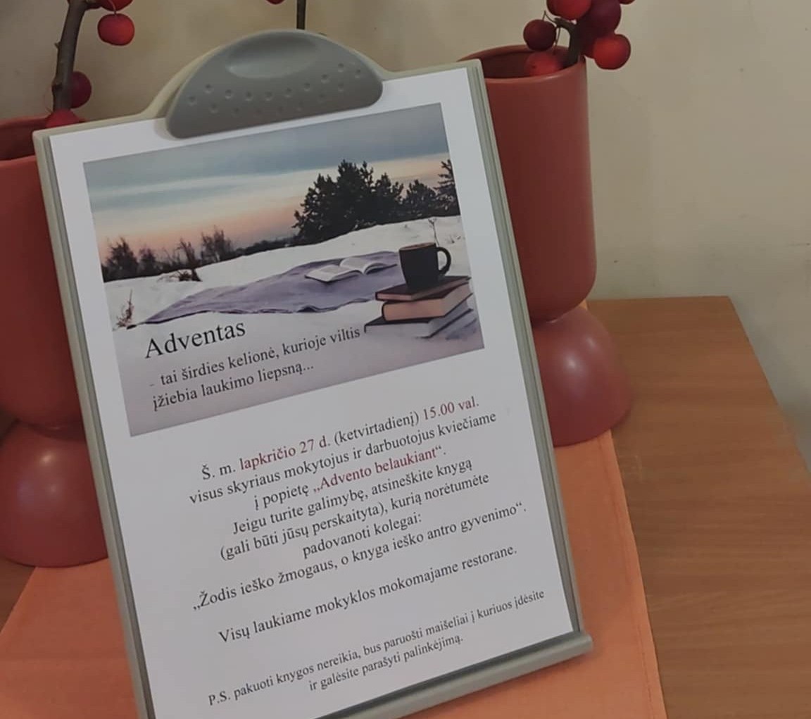 Šiandien mokykloje vyko jauki Advento popietė, į kurią susirinko mokiniai ir mokytojai. Renginio metu prisiminėme Advento papročius ir tradicijas, kalbėjome apie tai, kaip žmonės leisdavo ilgus žiemos vakarus, kokiais darbais užsiimdavo ir kokią prasmę turėjo šis ramybės bei susikaupimo laikotarpis. Popietės metu aptarėme Kūčių tradicijas –...