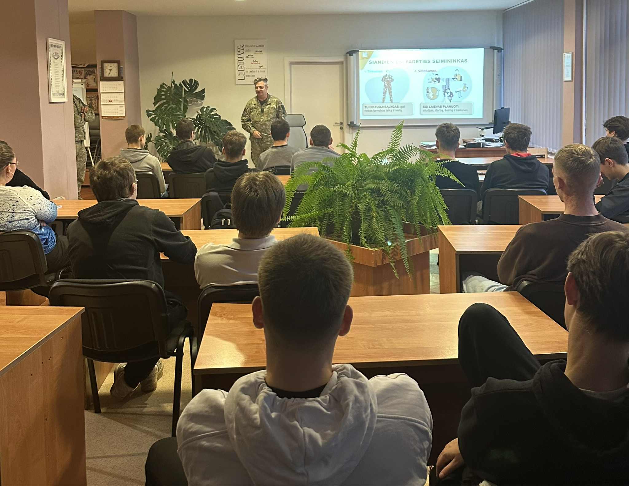 Šiandien mūsų mokykloje lankėsi Klaipėdos regiono karo prievolės ir komplektavimo skyriaus vyresnysis verbuotojas, štabo seržantas Andrejus Fedijus. Jis susitiko su 11 ir 12 klasių mokiniais, kuriems pristatė savanoriškos karo tarnybos galimybes ir atsakė į jaunimui rūpimus klausimus apie karo prievolę. Svečias pabrėžė, kad savanoriškai pasirinkti tarnybą...